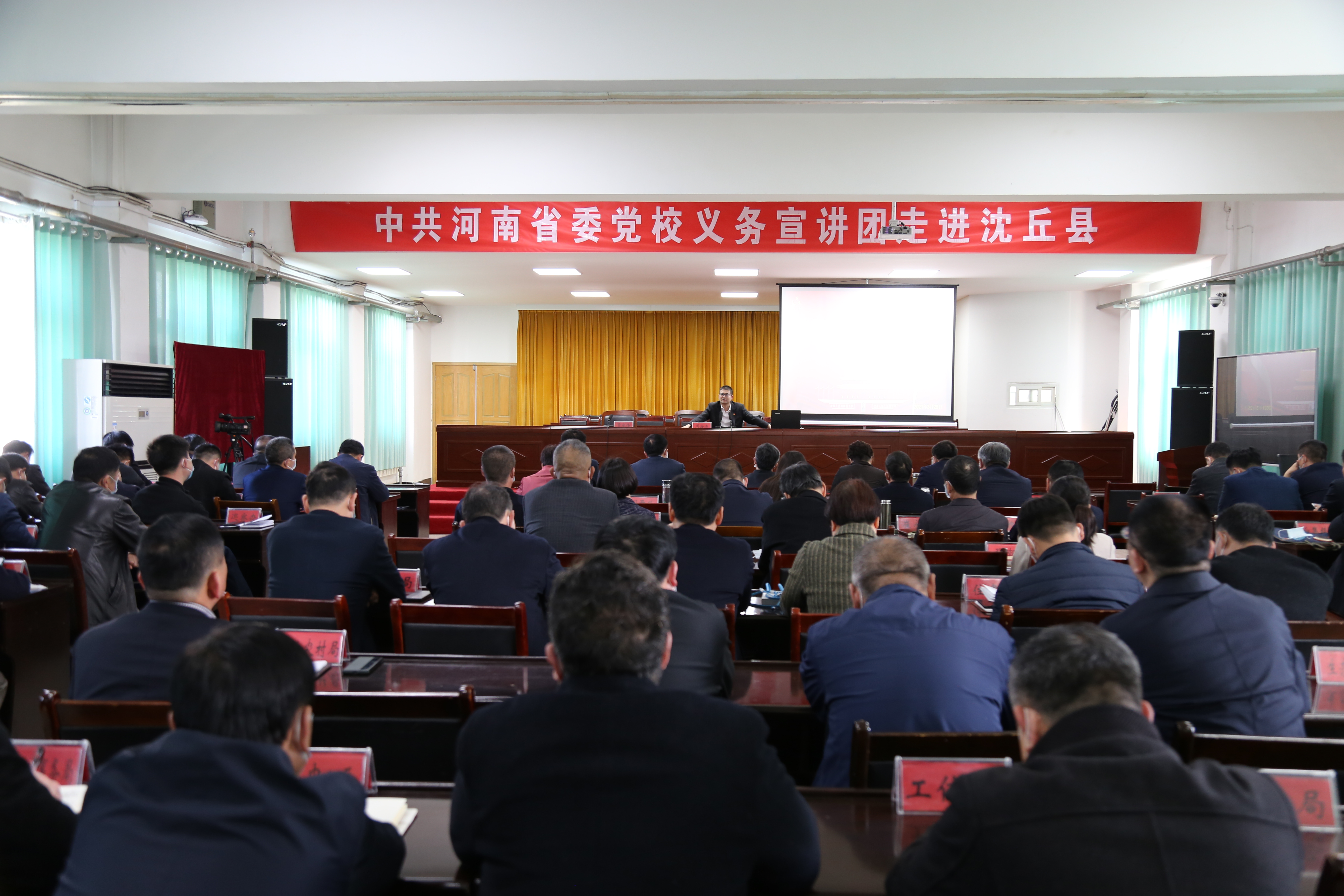 3月25日下午,中共河南省委黨校義務(wù)宣講團(tuán)走進(jìn)沈丘縣開(kāi)展宣講活動(dòng)。皇甫立新、賈慶偉、殷曉春、趙振、郝四春、劉和輝、呂孝坤等在家的縣四個(gè)班子領(lǐng)導(dǎo)及副處級(jí)以上干部與全縣近200余名黨員干部共同聆聽(tīng)了宣講報(bào)告??h委副書(shū)記賈慶偉主持報(bào)告會(huì)。