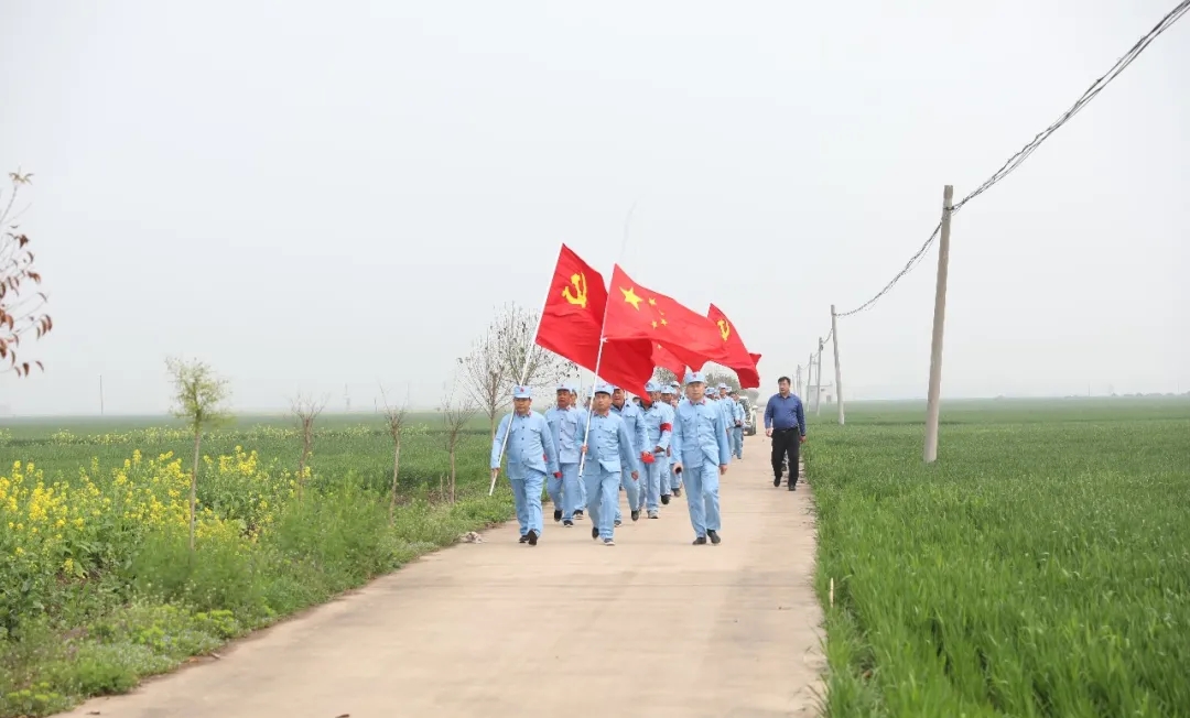 “我一定要跟著大部隊(duì)走,絕不掉隊(duì),不給紅軍前輩抹黑?!眲倓傋鐾晔中g(shù)的七一村黨支部書記何治安斬釘截鐵地說。在七二村,熱情好客的七里倉(cāng)群眾不僅給“大軍”送來了西紅柿、黃瓜、茶雞蛋、香蕉等補(bǔ)給品,還表演了“祖國(guó)你好”、“美麗生活”等扇子舞,再現(xiàn)了當(dāng)年紅軍到哪都受人民群眾擁戴的情景,同志們的疲憊一下子煙消霧散.....按照拓展行程安排,在盆李村的“周口市第一個(gè)農(nóng)村黨支部舊址”,同志們進(jìn)行了參觀瞻仰和重溫入黨誓詞等活動(dòng),回顧了歷史,緬懷了先烈,震撼了心靈,錘煉了黨性。