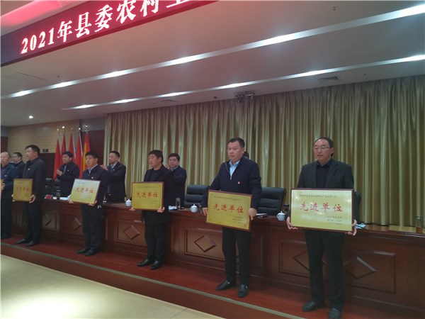 郭俊濤就貫徹落實(shí)會(huì)議精神及下一步農(nóng)村工作進(jìn)行具體安排部署??h委副書記許四軍宣讀了縣委、縣政府關(guān)于表揚(yáng)2020年度農(nóng)業(yè)農(nóng)村工作先進(jìn)單位、先進(jìn)個(gè)人的通報(bào)。會(huì)議還對(duì)受表彰的先進(jìn)單位代表進(jìn)行了頒獎(jiǎng)。