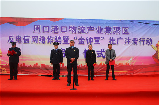 為打擊治理電信網(wǎng)絡(luò)詐騙犯罪,降低詐騙案件發(fā)生率,4月13日,周口港區(qū)舉辦反電信網(wǎng)絡(luò)詐騙宣傳暨“金鐘罩”推廣注冊(cè)行動(dòng)啟動(dòng)儀式,宣傳反電詐知識(shí),推廣公安部門推出的反詐騙系統(tǒng)平臺(tái)“金鐘罩”。港區(qū)黨委書記孫鵬到場(chǎng)宣布行動(dòng)正式啟動(dòng),港區(qū)黨委委員、紀(jì)委書記李素芹,公安分局局長康群泉在儀式上講話。