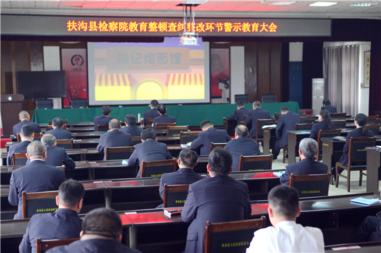 為推動政法隊(duì)伍教育整頓工作穩(wěn)步開展,扶溝縣檢察院堅持教育先導(dǎo),思想發(fā)動,通過開展警示教育活動,為查糾整改環(huán)節(jié)打好思想基礎(chǔ)。4月14日下午,扶溝縣檢察院組織全體干警集中觀看了《記憶中的燴面》《法不容私》《“保護(hù)傘”自身難保,“坐地虎”坐進(jìn)監(jiān)牢》三部警示教育片,充分發(fā)揮以案說法說紀(jì)和警示震懾作用,教育引導(dǎo)干警增強(qiáng)紀(jì)律觀念和規(guī)矩意識,心存敬畏之心,筑牢拒腐防變思想防線。