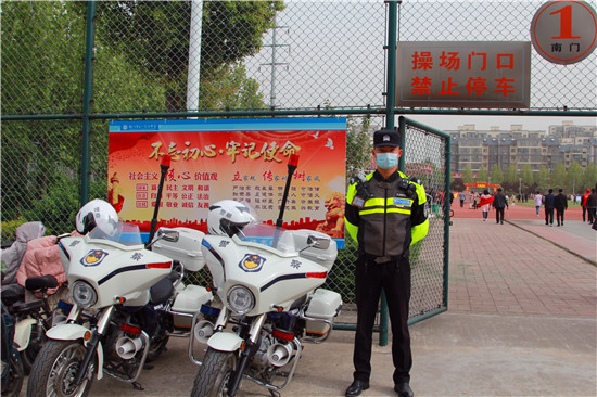 4月16日,鄲城一高舉行第12屆18歲成人儀式暨奠基高考決勝2022誓師大會。鄲城縣公安局副局長朱衛(wèi)兵率領交警鐵騎隊兵分4路,從早上7時至上午11時在學校周圍維護交通秩序,確保數(shù)千名家長的車輛有序停放,疏堵保暢。