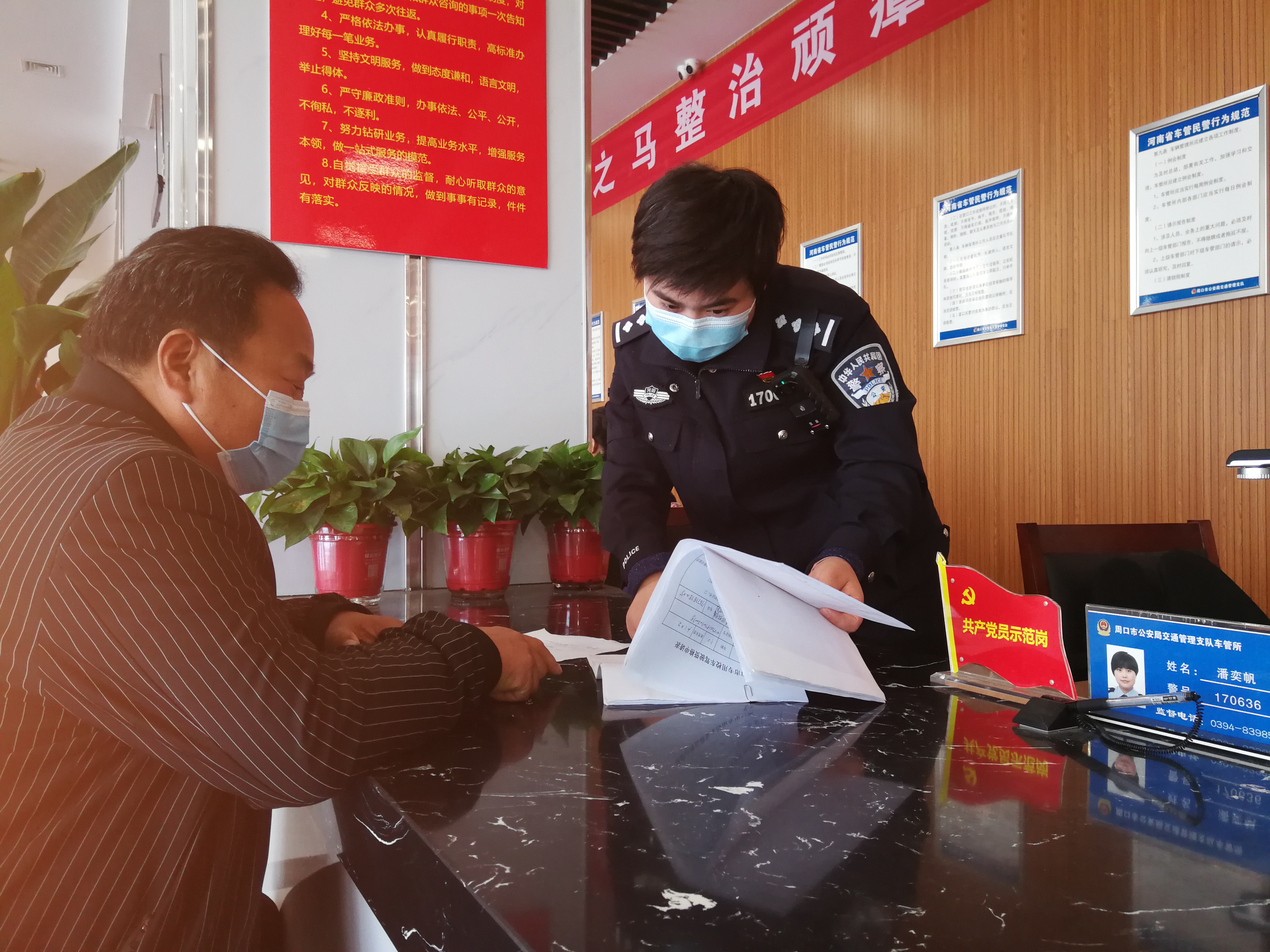 三是設(shè)置黨員示范崗,發(fā)揮引領(lǐng)作用。車(chē)管所在各個(gè)業(yè)務(wù)大廳增設(shè)了“黨員示范崗”,充分發(fā)揮優(yōu)秀黨員的示范、帶動(dòng)作用,引領(lǐng)全體工作人員牢記服務(wù)宗旨,提升服務(wù)水平,樹(shù)立良好形象。