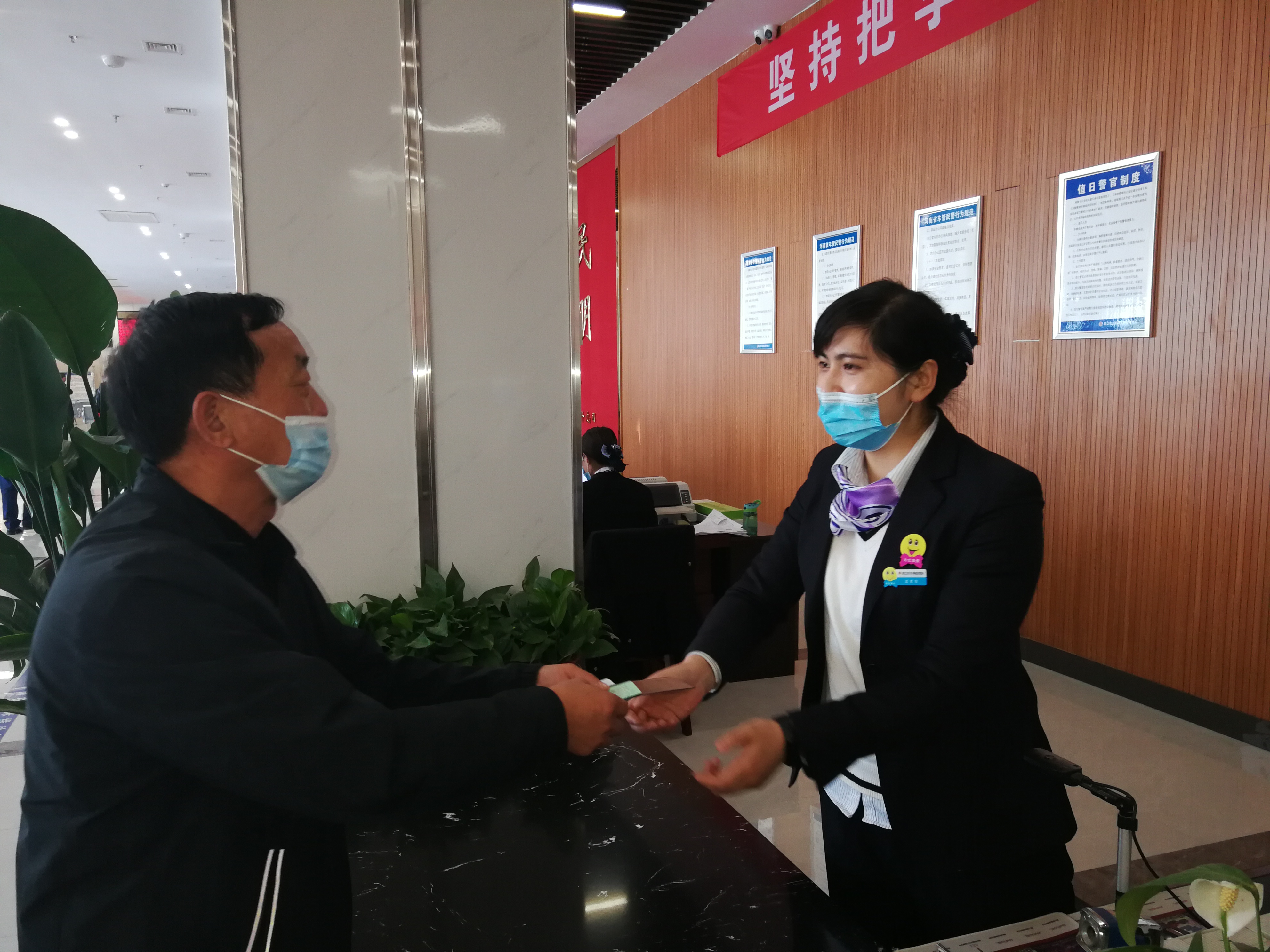 一是佩戴“笑臉”胸卡,推行微笑服務(wù)。車(chē)管所為每一名窗口服務(wù)人員定制了“笑臉”胸卡,要求統(tǒng)一佩戴,時(shí)刻提醒窗口工作人員牢記微笑服務(wù),提升工作親和力。