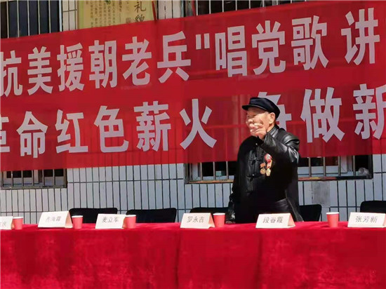 4月19日上午,鄲城縣新城街道黨工委邀請轄區(qū)抗美援朝老兵羅永吉老人走進(jìn)辦事處、9個社區(qū)和轄區(qū)中心學(xué)校,開展進(jìn)機關(guān)、進(jìn)社區(qū)、進(jìn)學(xué)?!俺h歌、講黨史、憶先烈、親經(jīng)歷”主題活動,進(jìn)一步增強廣大黨員干部、師生群眾聽黨話、跟黨走的政治覺悟,營造始終聽黨話、跟黨走的濃厚氛圍。