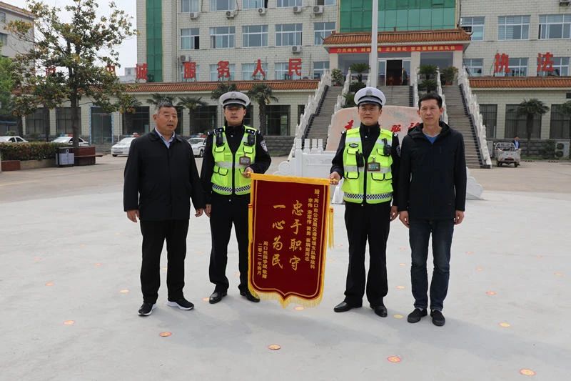周口技師學院領導為民警贈送錦旗以示感謝
