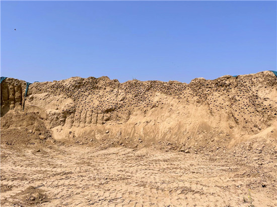 黃土堆壁上,鳥巢密布區(qū)域沒有覆蓋防塵網(wǎng)。邱一帆 攝