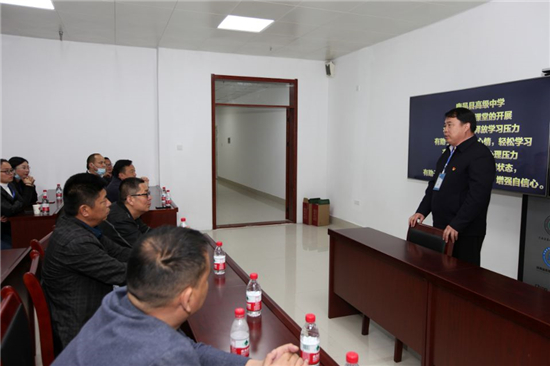 開考后,家長們在學(xué)校黨總支書記、校長高光乾的陪同下先后來到學(xué)校超市、北清部、學(xué)校廣播電視臺、青少年健康輔導(dǎo)中心、檔案室、愛國主義教育基地和職工書屋參觀。在教研中心會議室,大家共同觀看了學(xué)?;顒蛹叭蟛絼钪窘逃曨l。高光乾在與家長交流時,向關(guān)心支持學(xué)校工作的各位家長和社會各界表示衷心的感謝,希望家長在最后1個月的備考時間里與學(xué)校一起做到“節(jié)奏不變、任務(wù)不減、呵護陪伴”,共同助推復(fù)習(xí)備考工作,讓同學(xué)們在高考中取得優(yōu)異的成績。②5