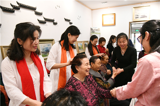 5月9日是母親節(jié)。為迎接這個充滿母愛的日子,5月5日上午,蕓雅讀書社在華威學(xué)堂舉辦了“遇見最美的自己”孝心表達活動,平時忙碌的子女利用假期的閑暇時光,相聚這里為母親按摩、理療經(jīng)絡(luò)、叩謝相擁、送鮮花等,以表達對母親養(yǎng)育之情的感恩,祝福天下母親健康、長壽、開心。來自市區(qū)的15個家庭參加這次母親節(jié)孝心表達活動。②9