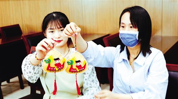 6月20日,市城鄉(xiāng)一體化示范區(qū)工作人員展示做好的香囊。當日,市城鄉(xiāng)一體化示范區(qū)開展“聞香過端陽 仲夏戴香囊”文明實踐主題活動,從拼龍舟、縫香囊、畫團扇、DIY粽子等一系列活動來沉浸式體驗優(yōu)秀傳統(tǒng)手工藝文化。
