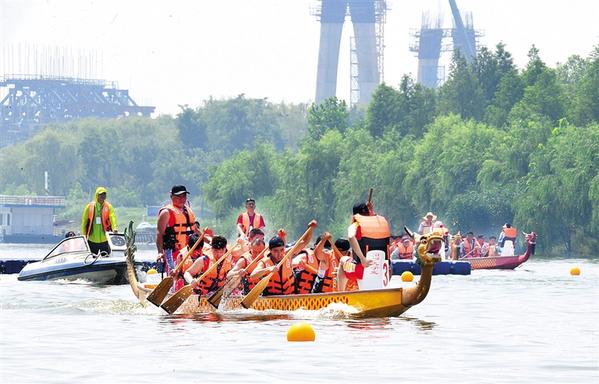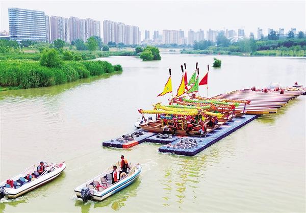 6月20日上午,周口市第八屆中華龍舟賽激烈進行中。當日,河南省第十一屆中華軒轅龍舟大賽暨周口市第八屆中華龍舟賽在周口市水上運動中心開賽。賽前,水上拔河、翎船捕鴨等傳統(tǒng)表演讓觀眾大飽眼福。