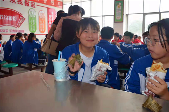 “我覺得今年的端午節(jié)意義特別特殊,再過幾天就要中考了,為了讓大家安心學習,我們沒有放假回家過端午,學校還特地為我們分發(fā)了粽子,從校長手中接過粽子的那一刻讓我深深感受到了被關(guān)愛的幸福!”九年級學生劉奇盛說。
