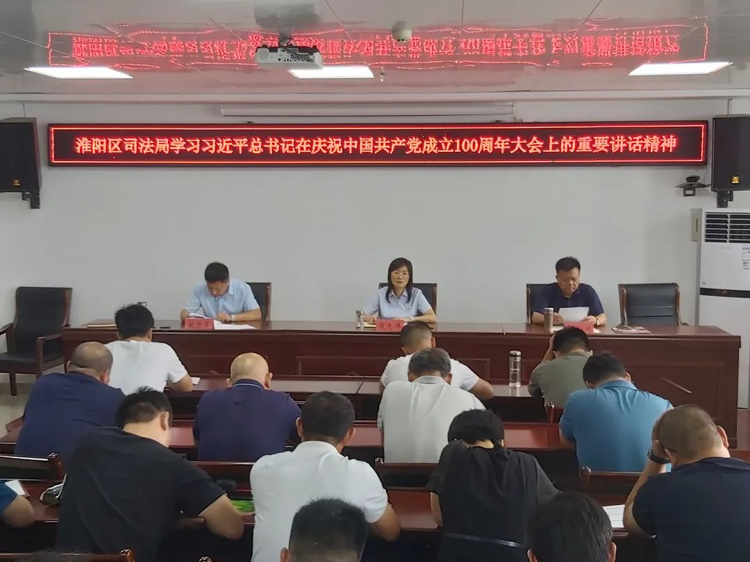 7月12日,淮陽區(qū)司法局召開全體會議,學(xué)習(xí)貫徹習(xí)近平總書記在慶祝中國共產(chǎn)黨成立100周年大會上的重要講話精神,研究部署貫徹落實工作。