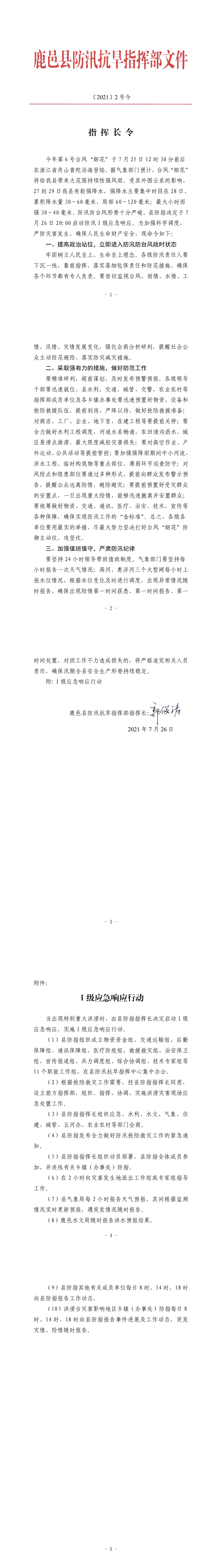附件:Ⅰ級應(yīng)急響應(yīng)行動當(dāng)出現(xiàn)特別重大洪澇時,由縣防指指揮長決定啟動Ⅰ級應(yīng)急響應(yīng),實施Ⅰ級應(yīng)急響應(yīng)行動。
