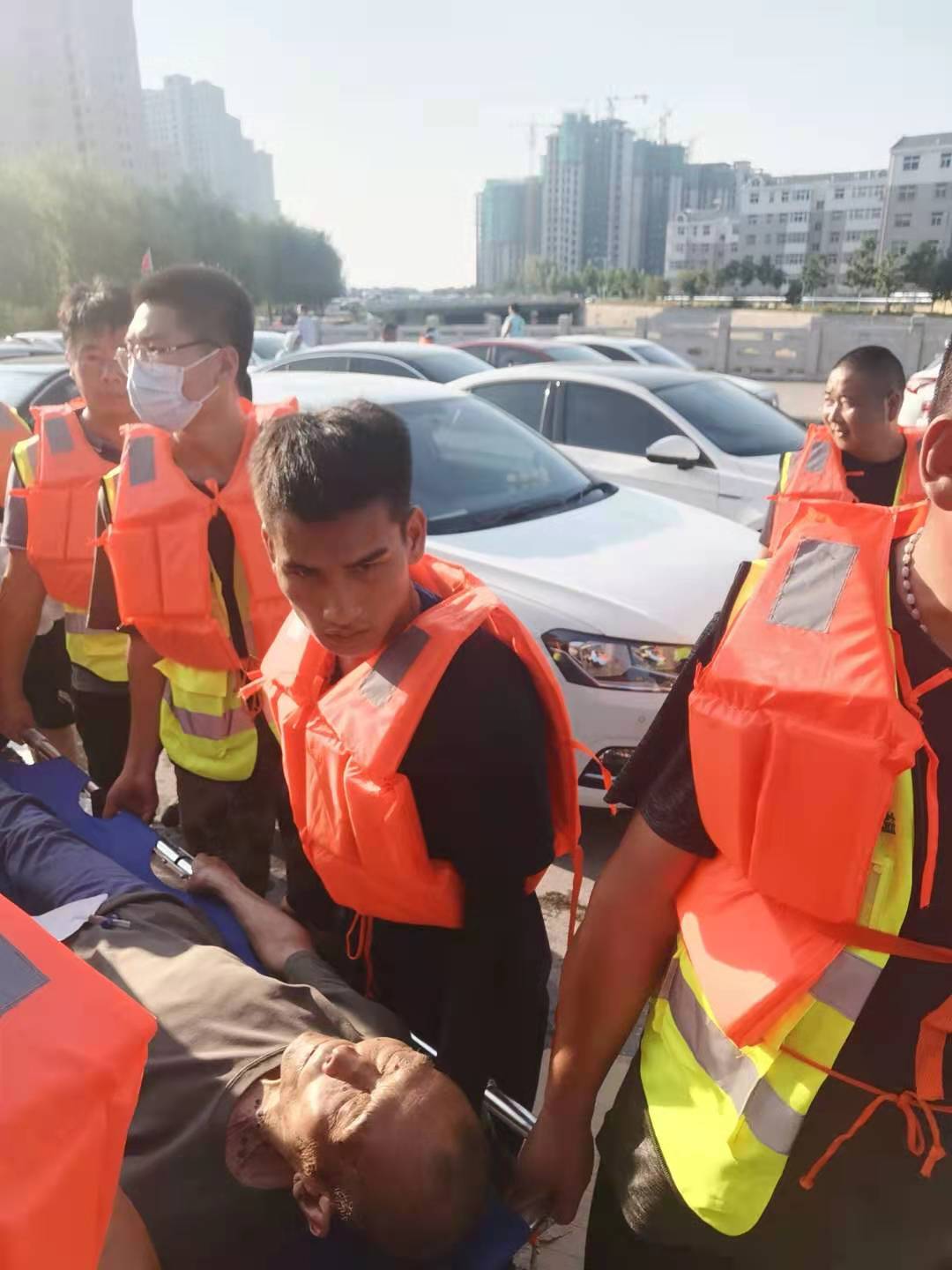 7月25日,新鄉(xiāng)衛(wèi)輝市紅十字會發(fā)布求援公告,已經(jīng)返回鹿邑的救援隊立即上報縣應(yīng)急管理局,請求到新鄉(xiāng)救災(zāi)一線開展援救,18名救援人員攜帶船只4只、救生衣40余件、大功率發(fā)電機(jī)一臺以及救援物資3噸,于26日10時到達(dá)新鄉(xiāng)展開救援,轉(zhuǎn)移危重病人、搜救被困人員、挪移妨礙交通車輛……