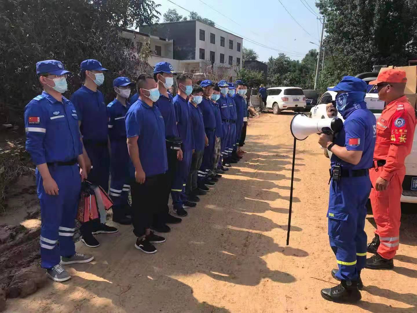 7月29日上午10時,在隊長肖永德的帶領下,周口川匯藍天救援隊30名隊員趕赴鄭州滎陽受災較重的賈峪鎮(zhèn)賈峪村進行災后消殺工作。
