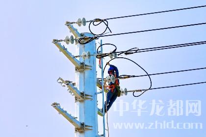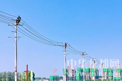 8月25日,在周口野生動(dòng)物世界第二電源工程項(xiàng)目施工現(xiàn)場,30多名電力施工人員正在對(duì)40基桿塔引線進(jìn)行校正、綁扎、緊線作業(yè)。