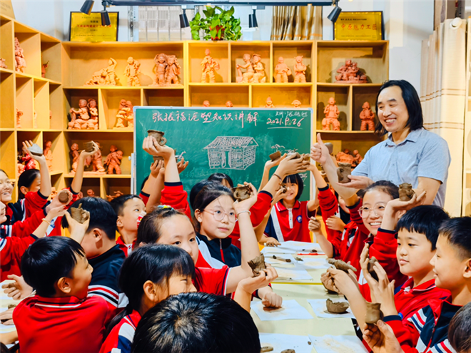 中小學(xué)生國慶節(jié)弘揚(yáng)非遺文化 學(xué)習(xí)張振福泥塑鈞瓷技法