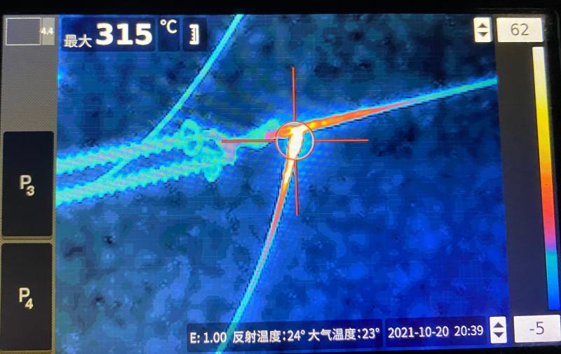 “蓮鄺線#19桿塔A相引流板連接螺栓發(fā)熱315℃,這屬緊急缺陷,需要立即處理!”10月20日晚,國網周口供電公司輸電運檢中心在對110千伏蓮鄺線六級電網風險保電夜巡過程中,發(fā)現蓮鄺線#19桿塔A相引流板存在打火現象。