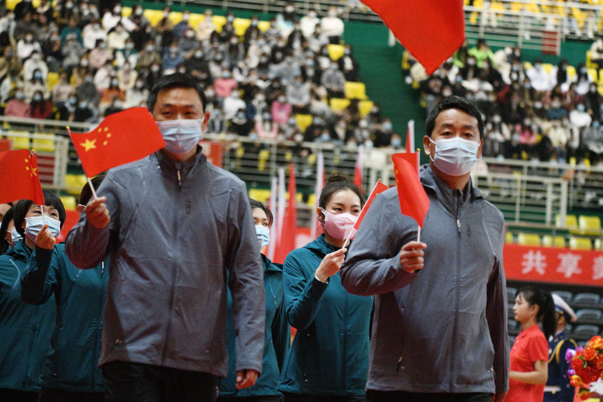 女運動員們展示巾幗不讓須眉的奮進精神