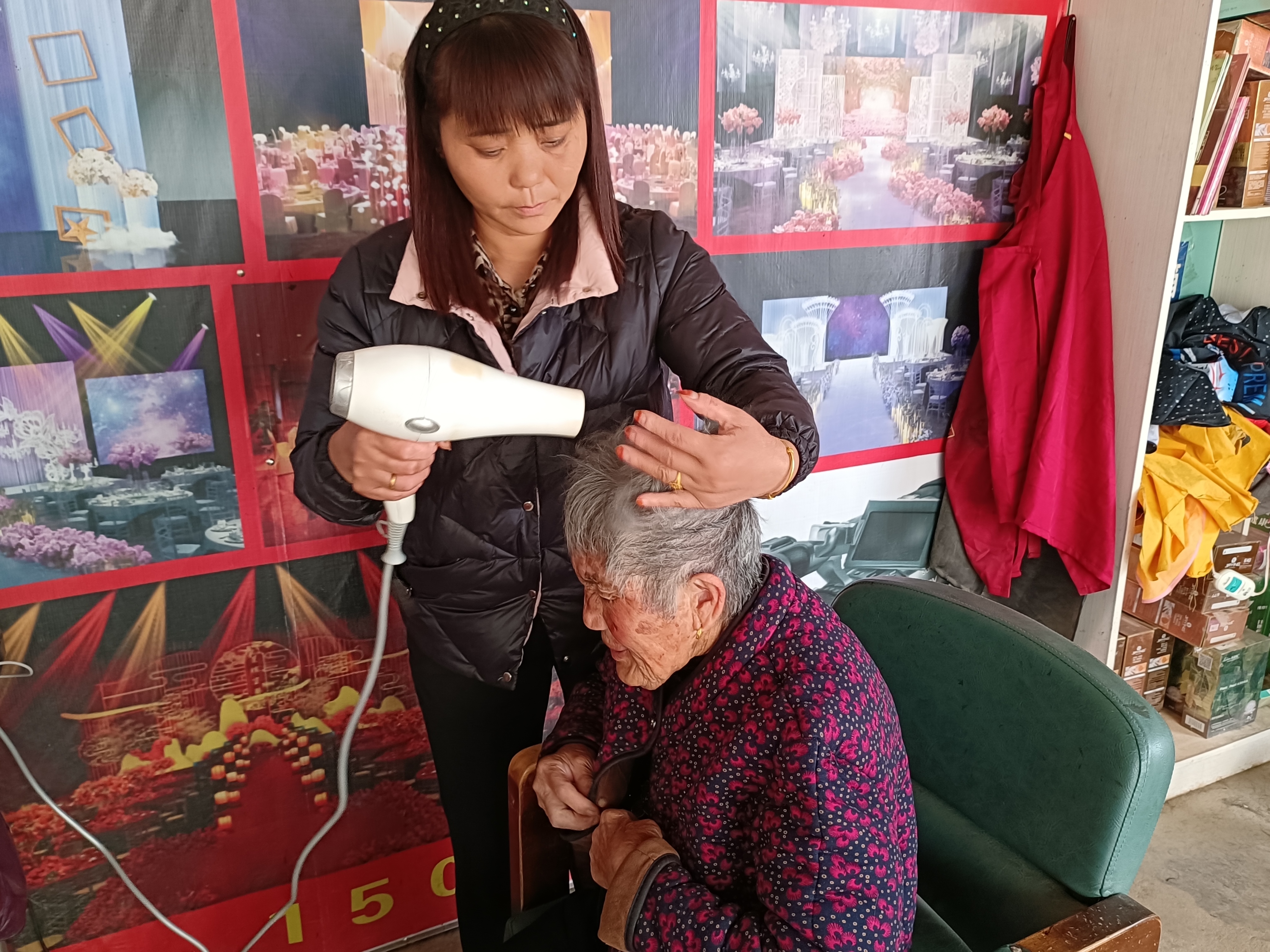 11月3日,記者接到熱線電話,說周口市城鄉(xiāng)一體化示范區(qū)搬口辦事處搬口行政村有位媳婦叫張書艷,她常年照顧90歲高齡的婆婆非常盡心。當(dāng)天下午,記者來到位于周口市第十六初級(jí)中學(xué)附近的名流美發(fā)店,見到了忙著給客人理發(fā)的張書艷,她婆婆楊秀真坐在旁邊,兩人之間的交流宛若親母女。