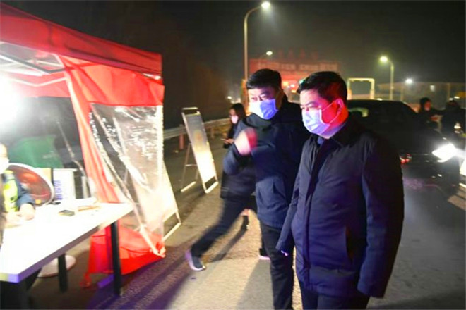 1月3日晚,鹿邑縣委書記李剛,縣委副書記、縣長郭俊濤帶領(lǐng)縣委辦、衛(wèi)健委、公安局、督查局、交通局等部門負(fù)責(zé)同志先后到鹽洛高速鹿邑西站、老子故里站疫情防控卡點,實地檢查指導(dǎo)疫情防控工作??h委常委、統(tǒng)戰(zhàn)部部長史凱歌,副縣長翟杰,縣政府領(lǐng)導(dǎo)成員谷長征一同檢查。③2