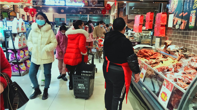 春節(jié)將至,我市各大超市處處是濃濃的年味。1月26日,記者走進(jìn)我市中心城區(qū)各大超市發(fā)現(xiàn),超市內(nèi)熙熙攘攘,生鮮果蔬區(qū)域消費(fèi)者尤多,絕大多數(shù)消費(fèi)者自覺佩戴口罩。②11