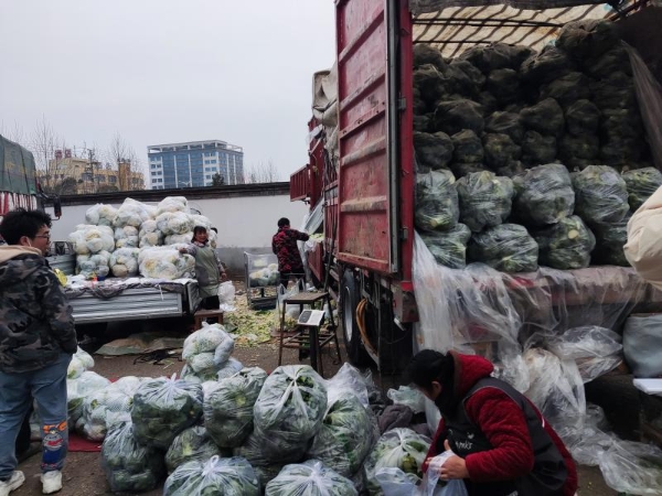 在市場(chǎng)入口,一輛輛載著各類商品的大貨車正排著隊(duì)往里進(jìn),測(cè)溫、驗(yàn)證、登記、抽檢,進(jìn)入市場(chǎng)后,幾輛三輪車迅速圍上,開始卸貨,一切都有條不紊?!斑@一車大蔥是市里十幾家飯店要的?!睆垘煾颠呅敦涍呎f,“過年有不少大飯店正常營(yíng)業(yè),現(xiàn)在就開始備貨了?!碑?dāng)被問及現(xiàn)在和平常有什么不一樣時(shí),張師傅略顯疲憊的臉上露出了笑容,“肯定不一樣,平常兩天來一次,現(xiàn)在一天一次,一年到頭就現(xiàn)在最忙,辛苦幾天,掙錢過個(gè)好年”。