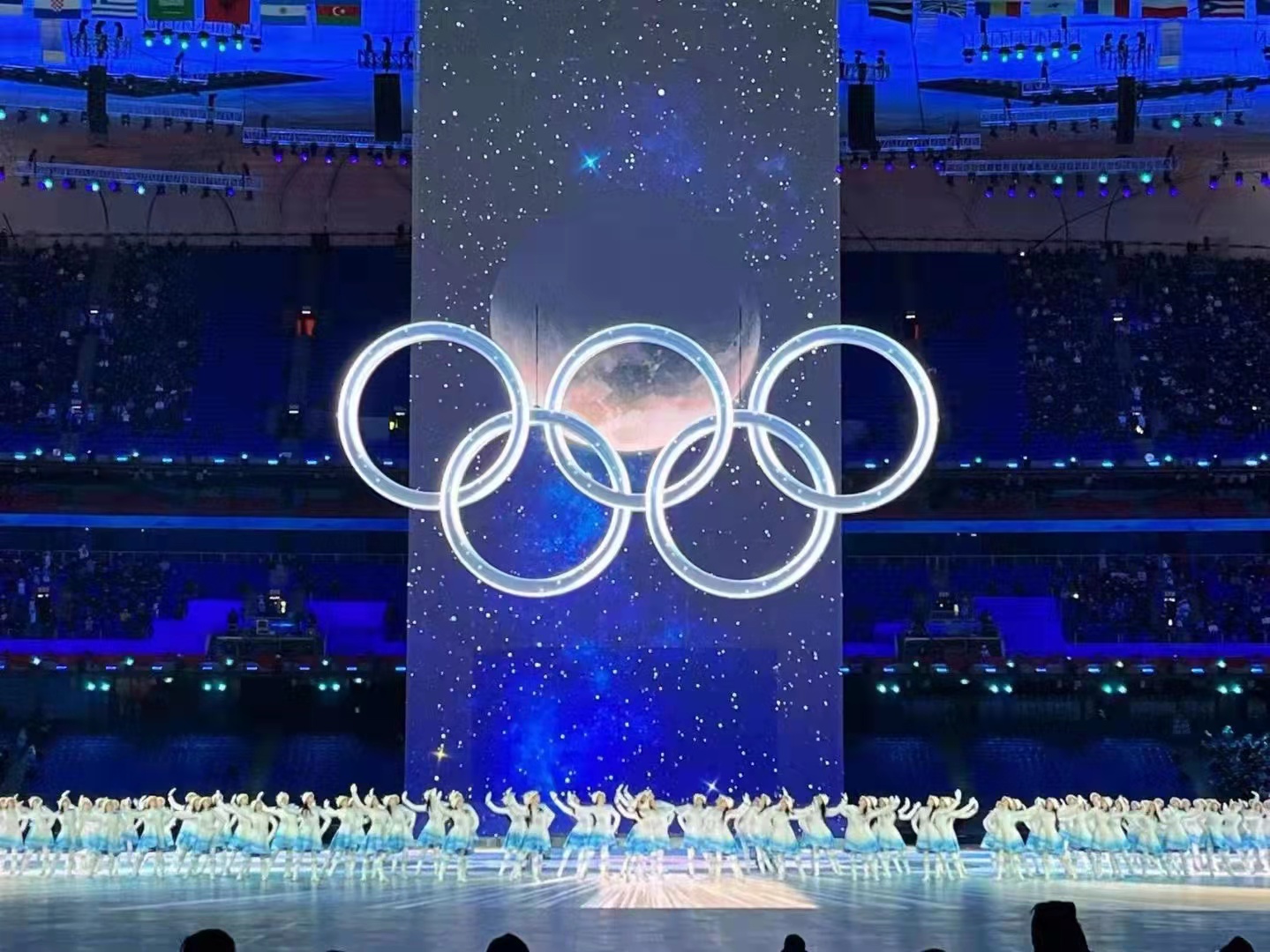 5分鐘時(shí)間,李昊瀅她們裝扮的96朵小雪花翩翩起舞構(gòu)建成一朵巨大的雪花,表達(dá)了四海賓朋齊聚中國,萬邦協(xié)和的寓意。精彩的表演贏得來此起彼伏的掌聲,是對她們辛苦訓(xùn)練幾個(gè)月最好的獎賞?;貞浧鹉情W耀的5分鐘,李昊瀅仍激動不已。