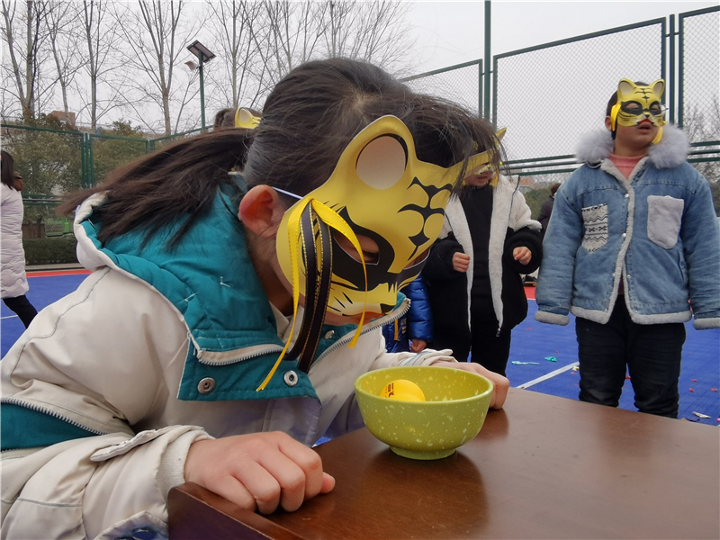 活動(dòng)現(xiàn)場(chǎng),一條條燈謎掛在繩上供大家思考,猜出謎底的“虎娃”開心地把燈謎撕下來(lái)找工作人員兌換獎(jiǎng)品,玩得不亦樂乎。同時(shí),元宵節(jié)的傳統(tǒng)食物元宵也出現(xiàn)在活動(dòng)中,社工、志愿者設(shè)置的團(tuán)團(tuán)圓圓(歡樂夾元宵)游戲,用乒乓球代替元宵,讓“虎娃”們進(jìn)行大比拼,大家從剛開始的不熟悉變?yōu)楹髞?lái)越來(lái)越默契,現(xiàn)場(chǎng)其樂融融。隨后,聲聲報(bào)福(踩氣球)游戲?qū)⒒顒?dòng)推向高潮。
