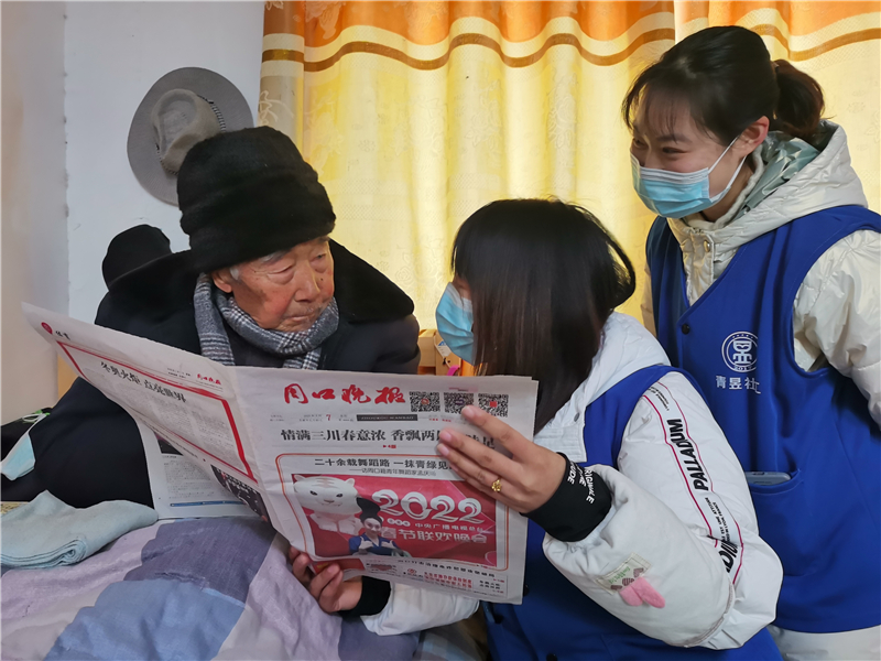 今年80歲的李東明,喜歡讀書看報,但是由于年齡原因視力逐漸下降,讀書看報越來越不方便。自從敬老院內設立了社工站,他每天最高興的事就是社工為他讀報紙上的內容?!靶姨澾@些孩子的陪伴,讓我的老年生活越來越幸福!”李東明說。
