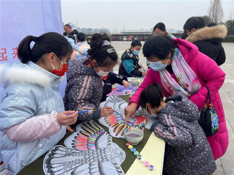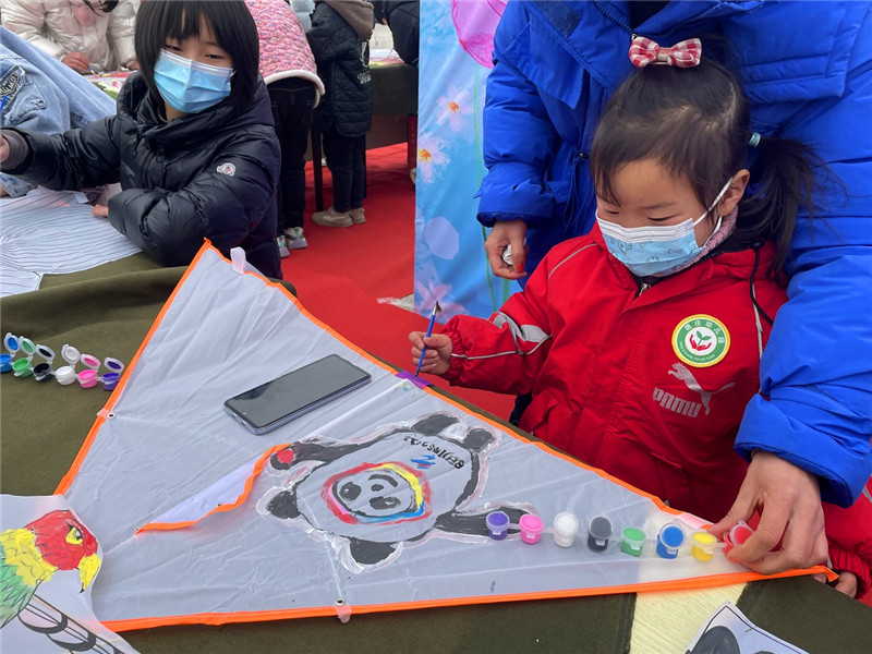 “媽媽你看,我畫的冰墩墩可愛嗎?”2月15日上午,“放飛春天——兒童DIY手繪風(fēng)箏”活動在周口市文化藝術(shù)中心西廣場如期舉辦。一名身穿紅色棉服的小女孩在媽媽的幫助下,創(chuàng)作完成了一只畫有“冰墩墩”形象的手繪風(fēng)箏。