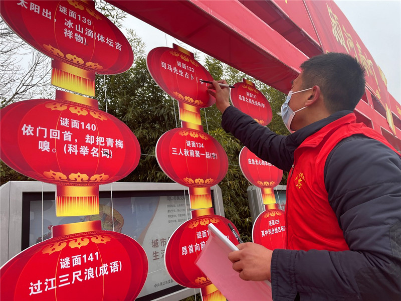 “阿姨您好!148號燈謎的謎底是‘香皂’。”2月15日,在周口市文化藝術(shù)中心西廣場,正在舉行“潁河春燈——元宵燈謎猜猜猜”活動?!拔易钕矚g猜燈謎了,猜對以后我還能拿到一個玩具小飛機,真開心!”說話的這個小男孩姓汪,今年8歲,在今天這場猜燈謎活動中,他是第一位給出正確答案的參與者。