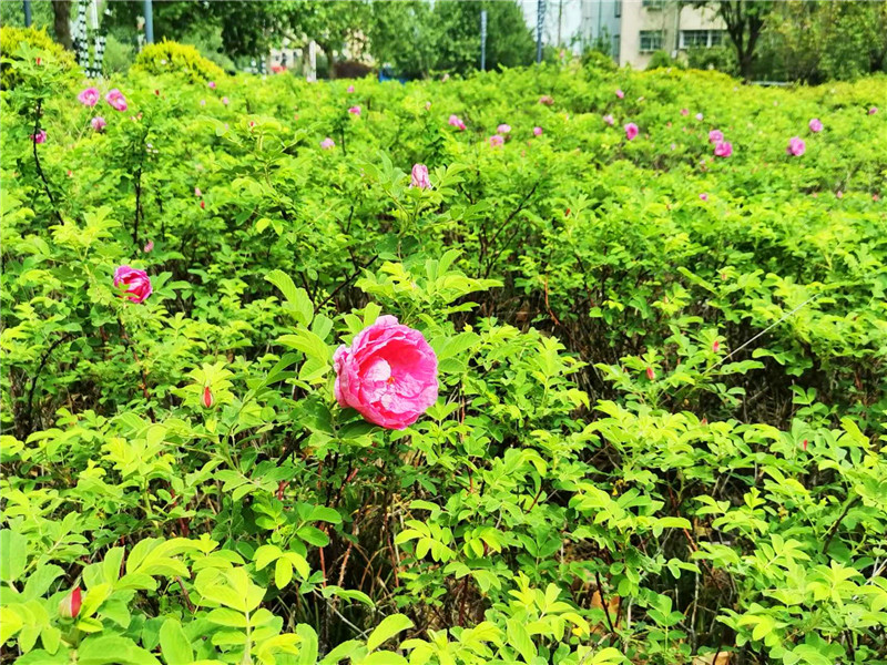 近日的鐵路主題公園正值玫瑰花開,紅紅粉粉的花朵綴滿枝頭,在風(fēng)中舞動,成了一幅醉人的秀美畫卷,將公園裝點得璀璨奪目。