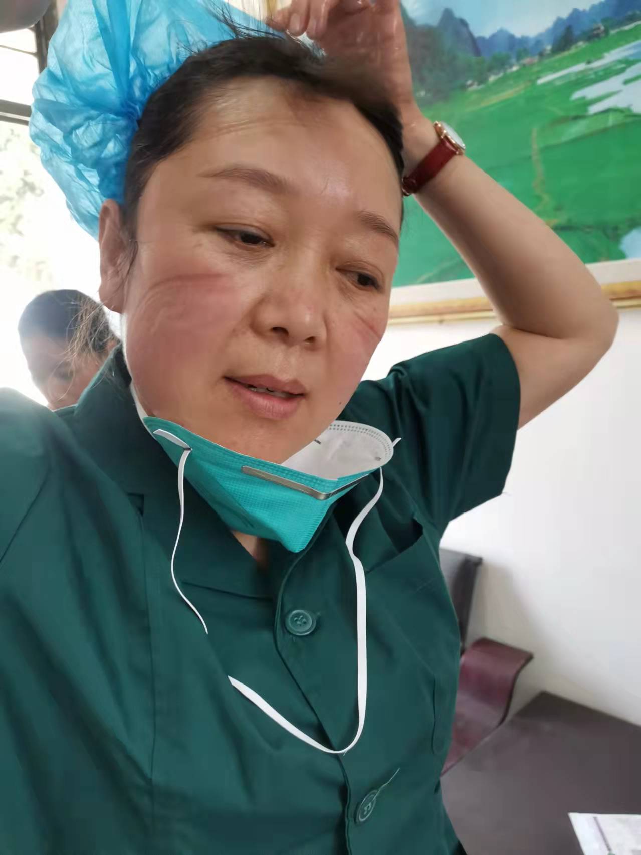 10多天來,雷雪玲總是早出晚歸,穿著厚厚的隔離服,戴著橡膠手套、防護(hù)眼鏡、帽子和面罩,套著過膝的腳套,連續(xù)工作數(shù)十個(gè)小時(shí),期間不能上衛(wèi)生間、不能喝水,甚至不能擦擦汗。天氣寒冷,但是一天工作下來,她總是被厚厚的防護(hù)服悶得汗流浹背,手被泡得發(fā)白,臉上也被口罩勒出層層痕跡,加上本來就患有心臟病的她,經(jīng)常會體力不支,但是她卻不顧病痛的折磨,從未請過一次假,每天都堅(jiān)持帶病入戶采樣。晚上工作結(jié)束,她的雙腿已經(jīng)麻木,也顧不上休息片刻又匆忙準(zhǔn)備第二天檢測需要的試劑,有時(shí)為了方便早上出發(fā),她直接和衣而臥。她的這種不怕苦,不怕累,舍小家為大家的犧牲精神深深感動著每一位醫(yī)護(hù)人員!
