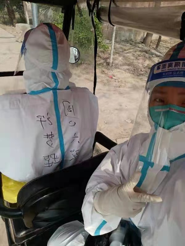 許夢蝶她們?nèi)サ拇宸稚⑤^廣,從凌晨開始一個村挨一個村地跑下去,汗水很快濕透防護(hù)服,一般到下午2點,前來采樣的村民會逐漸變少,但是饑腸轆轆的她卻不能就餐,因為偶爾還會有村民過來采樣,如果脫下再穿防護(hù)服肯定會耽擱村民的時間,“我們本來就是為人民服務(wù)的,我們等等無所謂,不能讓老百姓來等我們”,許夢蝶當(dāng)時這樣想著,然后婉拒了工作人員的就餐邀請,等沒有村民來采樣了再休息。她們吃完飯與大部隊集合的路上,突然隊長接到鄉(xiāng)長的電話說人手不夠讓回去采集封控村,她們立刻掉頭回去,沒有任何怨言,沒有任何要求。到了以后工作人員通知說這個村500多人要入戶采集,她們立即穿上防護(hù)服就開始了工作,和村干部及志愿者相互配合,拿著未集中核酸采樣的群眾名單,不停穿梭在村里的大街小巷、房前屋后、床邊炕頭進(jìn)行現(xiàn)場核酸采樣。臨走時叮囑群眾日常防護(hù)不能大意,勤洗手、勤消毒、戴口罩,卻忘記了我們自己已經(jīng)濕透的衣服還有灌鉛似的雙腿……