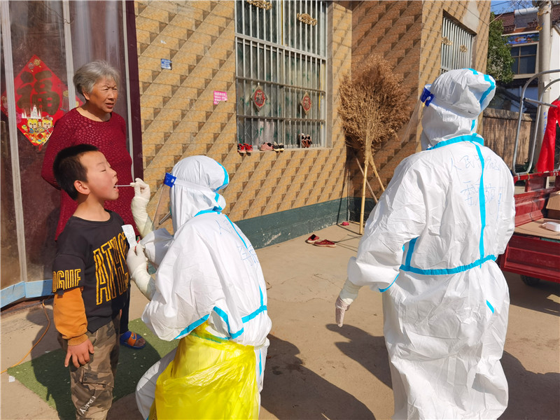在這場沒有硝煙的戰(zhàn)爭中,每天凌晨3點起床,下午6點到達(dá)酒店,她們每天不到萬不得已,不敢喝水,不上廁所,從一開始集中采集到后來入戶采集,村民們都待在家里,只看到站點執(zhí)勤人員和穿著“大白”的她們,每天穿梭在幾個村莊之間,還幫助村民買藥,與當(dāng)?shù)卮迕窠⒘松詈竦母星椤?/p>
