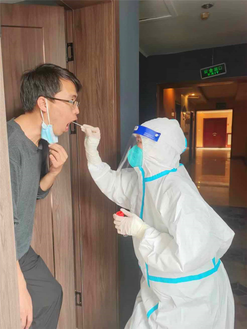 在太康采集核酸的一天,突然得知母親病故的消息,田娜朝著家的方向,跪下三叩頭,隔空拜別母親,隨后又穿戴好所有防護裝備,義無反顧地走向抗疫工作第一線。
