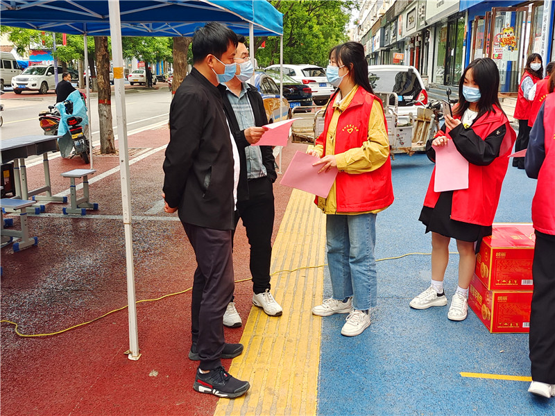 活動中,志愿者向新城路、行政路、小吃街等路段沿街商鋪發(fā)放《致全縣商戶的一封信》,講解疫情防控最新形勢和最新政策,提醒沿街商鋪商家落實好掃“兩碼”、測體溫、出入登記等各項疫情防控措施,引導群眾養(yǎng)成正確佩戴口罩、保持一米線距離等健康防護習慣,提醒人員不扎堆不聚集, 用志愿服務匯聚抗疫力量,筑牢群眾健康屏障。