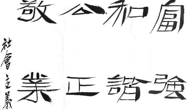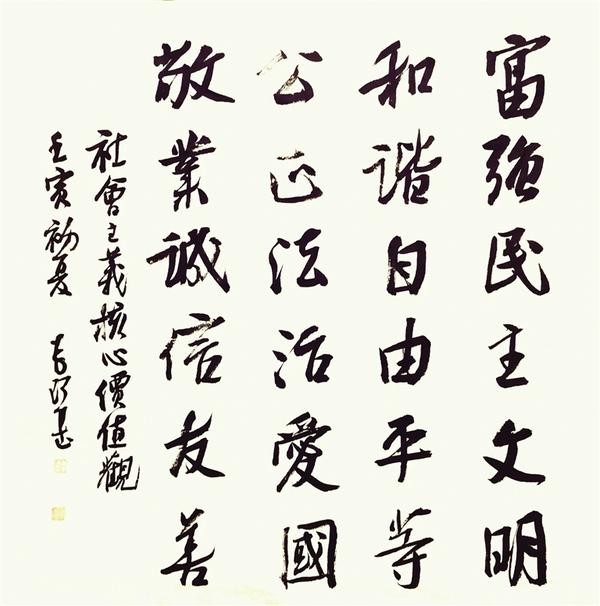 程度 中國書法家協(xié)會理事、隸書委員會委員,北京書法家協(xié)會理事,北京市朝陽區(qū)書法家協(xié)會秘書長(社會主義核心價(jià)值觀)