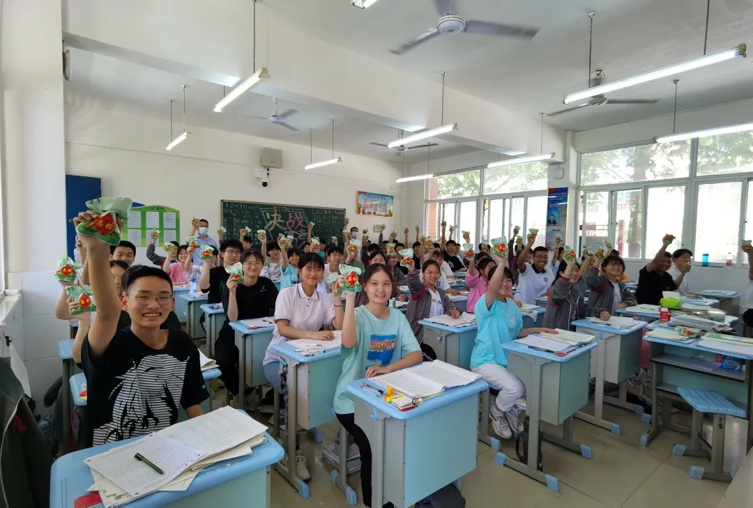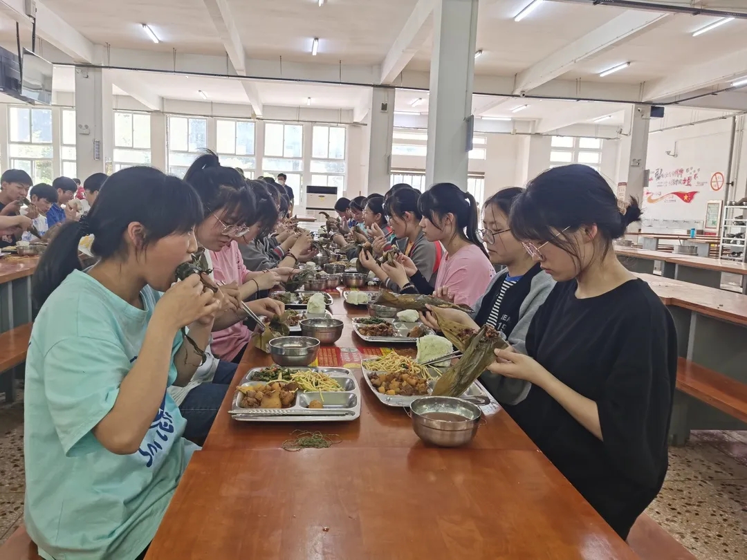 小小粽子,深深情誼。同學們接過粽子,滿懷感恩,臉上洋溢著喜悅的笑容。老師們還將粽子掛在教室門口,同學們離開教室時輕快跳起,用頭頂粽子,寓意“一定高中”,中午就餐時間,熱氣騰騰的粽子讓同學們通過舌尖上的美味感知傳統(tǒng)文化魅力,在愉悅的氛圍中煥發(fā)昂揚斗志,實踐青春誓言。