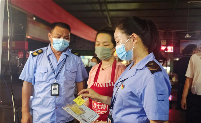 與此同時,項城市市場監(jiān)督管理局工作人員不定期前來查驗從業(yè)人員健康證,攤點證,確保攤主規(guī)范經(jīng)營。項城市城管局工作人員每隔兩天就會對攤主液化氣罐安全性能進行檢查,全面消除夏季液化氣使用安全隱患。經(jīng)過多個部門通力合作,全面助推了項城“夜經(jīng)濟”安全、有序發(fā)展。