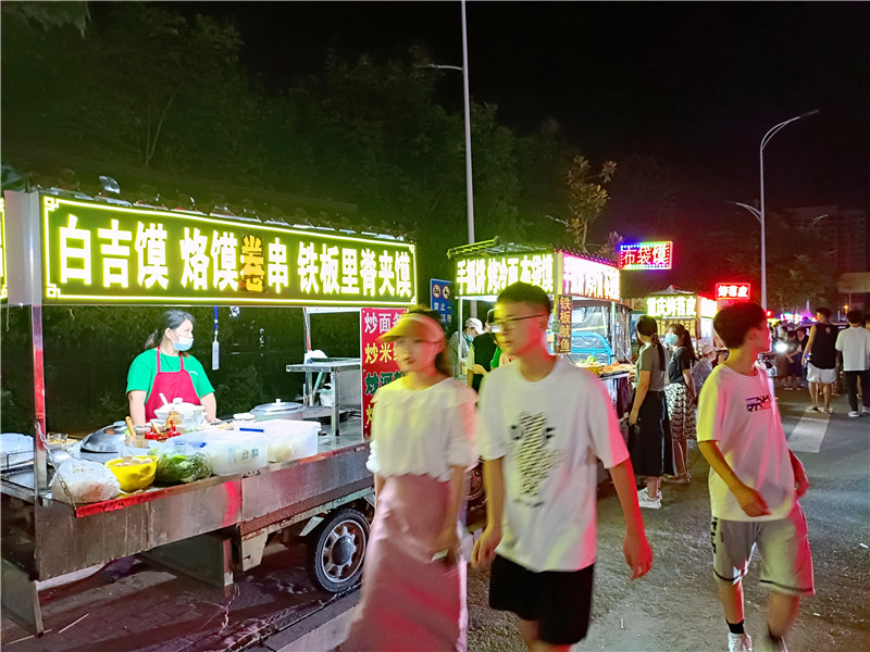 疫情散去,終歸風(fēng)平浪靜。城市夜晚被賦予更斑斕的色彩、更旺盛的生命力,夜消費(fèi)、夜休閑、夜文化在鹿邑市民生活中不可或缺。為進(jìn)一步促進(jìn)“夜經(jīng)濟(jì)”健康發(fā)展,鹿邑縣商務(wù)局、市場(chǎng)監(jiān)管局、城市管理局等有關(guān)部門審慎包容、精準(zhǔn)施策,堅(jiān)持管理和服務(wù)并重,因地制宜,完善城市便民疏導(dǎo)點(diǎn)經(jīng)營(yíng)秩序,建立臨街餐飲店、夜市小吃外擺準(zhǔn)入機(jī)制。該縣城區(qū)原有8個(gè)便民疏導(dǎo)點(diǎn),經(jīng)過(guò)實(shí)地調(diào)查論證,有關(guān)部門又將新近自然形成的3個(gè)商販聚集地設(shè)立為便民疏導(dǎo)點(diǎn)。同時(shí),以個(gè)人申請(qǐng)、實(shí)地調(diào)查的方式對(duì)沿街門店外擺經(jīng)營(yíng)進(jìn)行放開。