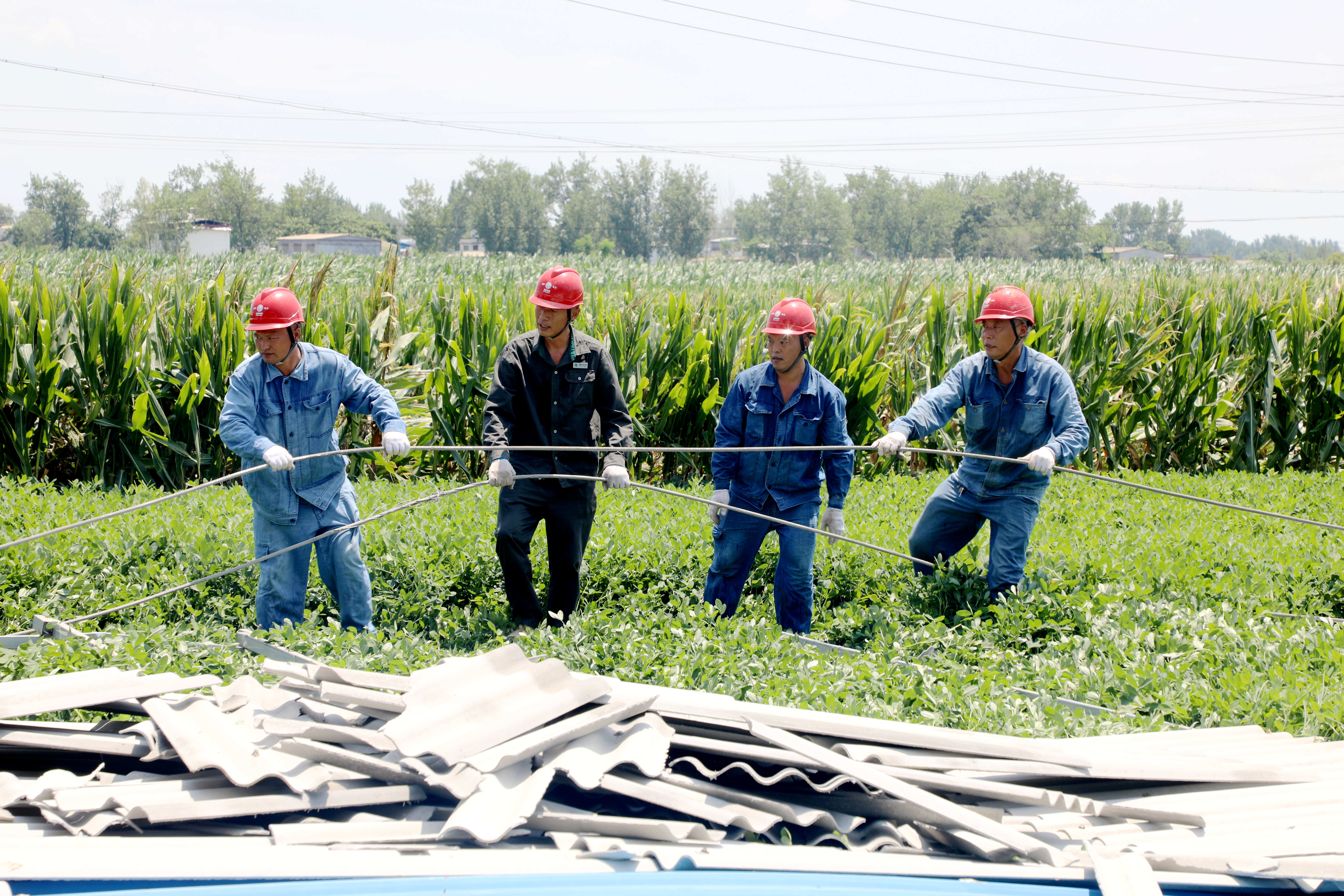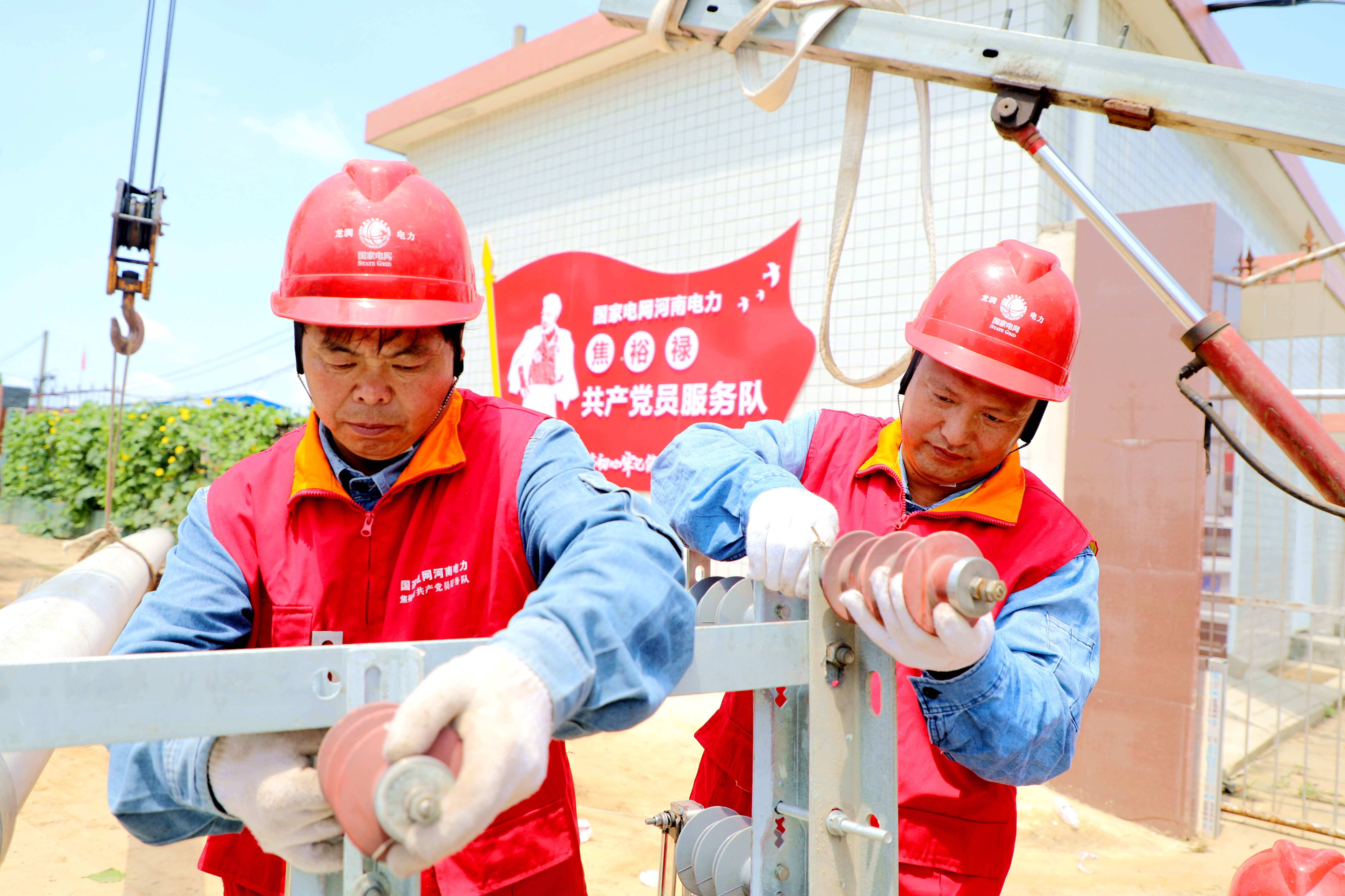 在35千伏址坊變電站10千伏灣張線出線倒桿緊急搶修現(xiàn)場(chǎng),焦裕祿共產(chǎn)黨員服務(wù)隊(duì)沖在最前線,戰(zhàn)高溫、斗酷暑,將原電桿位置遷移,在安全地點(diǎn)重新立桿接線,高效完成牽引、挖坑、立桿、填土、鞏固、緊線等搶修工序。經(jīng)過(guò)連續(xù)奮戰(zhàn),7月26日20時(shí)06分因?yàn)?zāi)停電線路全面恢復(fù)供電。③9