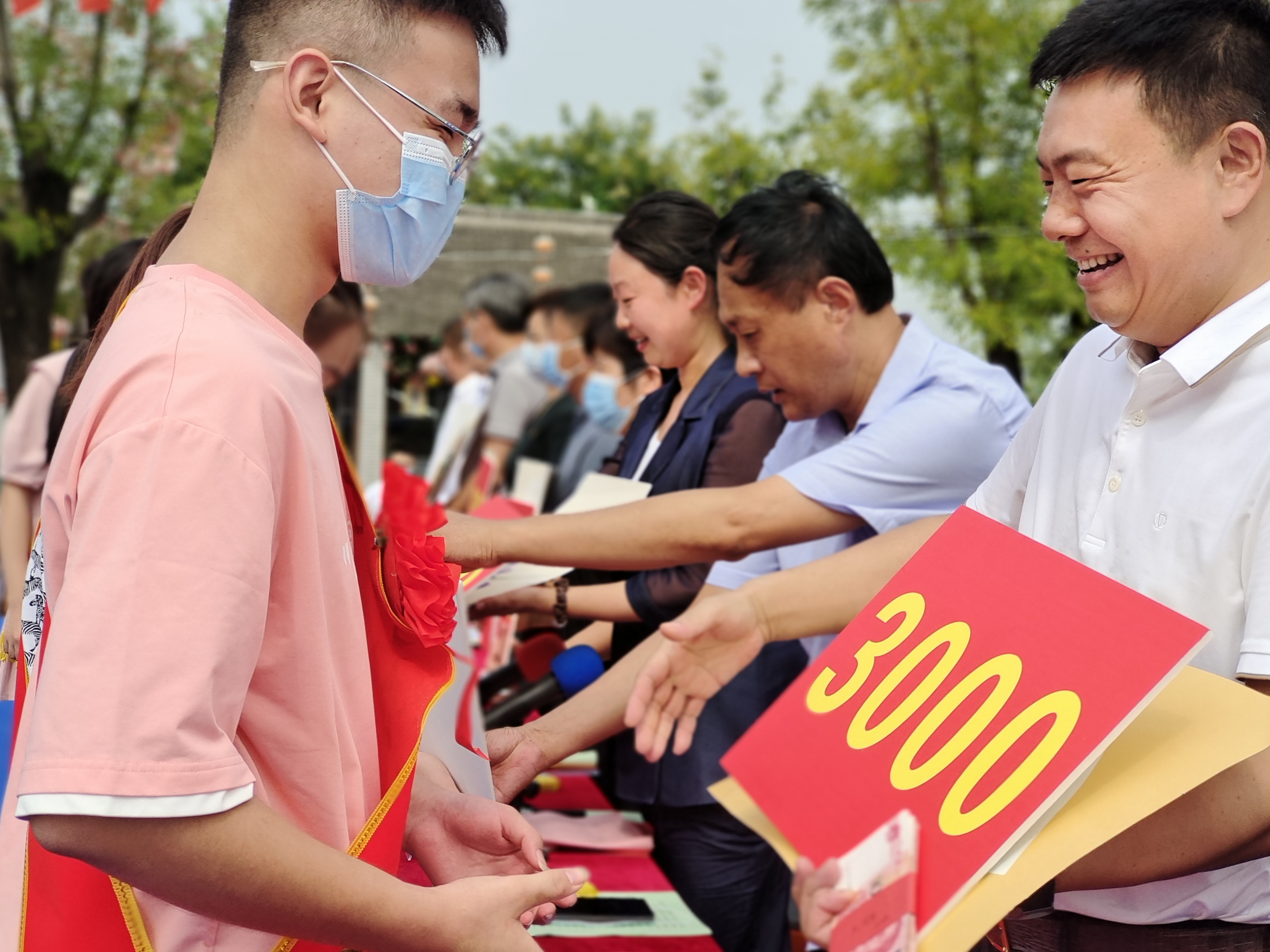 圖片說明:8月20日上午,太康縣老冢鎮(zhèn)2022年“山果”助學(xué)行動暨慶祝第38個教師節(jié)表彰大會在老冢鎮(zhèn)劉寨印象舉行,對9個尊師重教先進(jìn)行政村、8個教育工作先進(jìn)單位、63名優(yōu)秀教師、100名優(yōu)秀中小學(xué)生、1名2022年考入北京大學(xué)的研究生,及17名被雙一流高校錄取的大一新生進(jìn)行了表彰,共發(fā)放獎學(xué)獎教資金10.36萬元,詠絮書畫院向獲獎學(xué)生贈送了書畫作品。會前,與會人員共同觀看了文藝匯演和《美麗鄉(xiāng)村看老?!芳o(jì)錄短片。