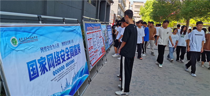 9月6日是國家網(wǎng)絡(luò)宣傳周校園日,鹿邑縣第二高級中學(xué)校園里整齊地擺放出數(shù)塊制作精美、內(nèi)容充實(shí)的網(wǎng)絡(luò)安全宣傳展板,引起師生們駐足觀看。