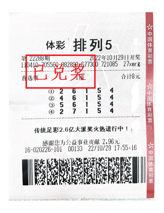 河南省體育彩票管理中心周口分中心兌獎(jiǎng)大廳11月1日迎來(lái)了幸運(yùn)購(gòu)彩者王先生(化名)。10月29日,排列5第22288期開出號(hào)碼“5、6、1、5、4”,周口市區(qū)購(gòu)彩者收獲“排列5”直選1注,攬獲獎(jiǎng)金10萬(wàn)元。