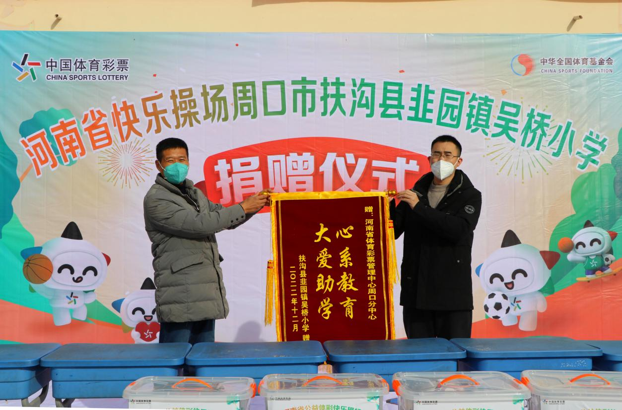 愛(ài)心涌動(dòng),暖意融融。12月11日上午,周口體彩分中心工作人員及當(dāng)?shù)伢w彩公益團(tuán)成員帶著“公益體彩 快樂(lè)操場(chǎng)”捐贈(zèng)的體育器材來(lái)到扶溝縣韭園鎮(zhèn)吳橋小學(xué),開(kāi)展“公益體彩 快樂(lè)操場(chǎng)”捐贈(zèng)活動(dòng)。