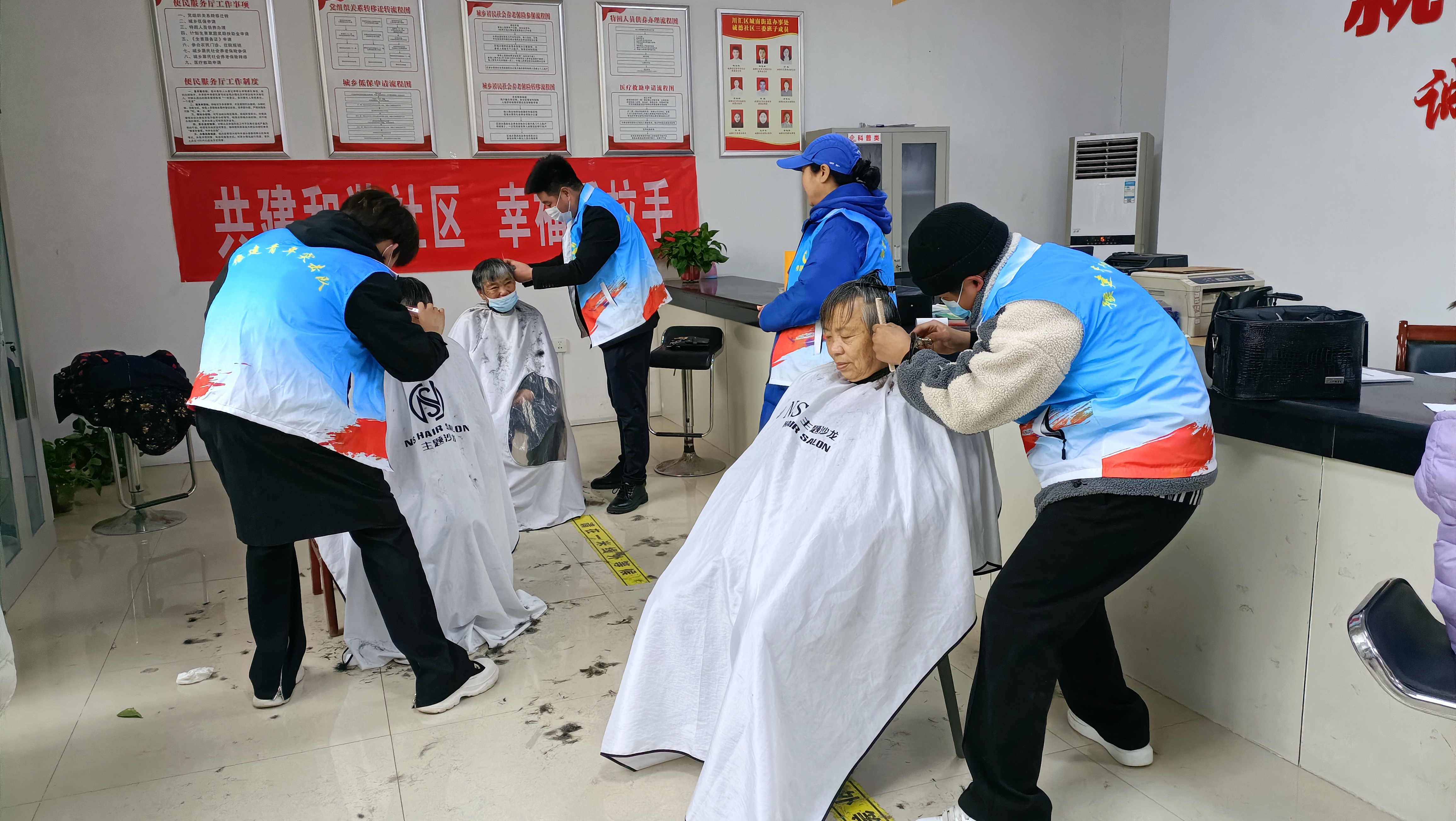志愿者們一邊為老人們剪著頭發(fā),一邊陪老人們聊聊天、拉拉家常??粗敉旰蟮陌l(fā)型,老人們樂得合不攏嘴,一直將“謝謝”掛在嘴邊,紛紛表示在社區(qū)服務(wù)站就能剪一個(gè)清爽滿意的發(fā)型,真是太好了。居民李婆婆表示自己出入需要輪椅,想外出理發(fā)很不方便,志愿者們此舉為她解決了個(gè)大難題。