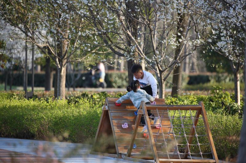 春風(fēng)拂面,百花盛開(kāi),明媚的春光里,居民們紛紛走上街頭,來(lái)到家門口的公園里,徜徉在花海中,或拍照留念,或嬉戲玩耍。